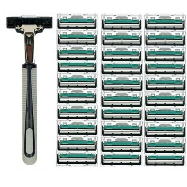 Brand Name: MISS ROSEQuantity: 1 Knife Holder+30 BladesModel Number: Men's Razor SetSize: Male,FemaleItem Type: Razor BladeMaterial: SteelFeature: double-layer blade